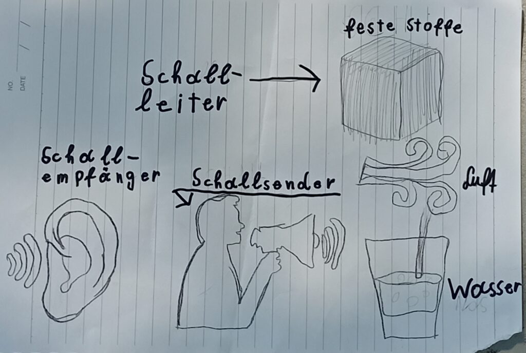 Luft ist der schlechteste Schallleiter, weil die Luftteilchen sehr weit auseinander liegen. Bei Flüssigkeiten wird der Schall besser geleitet, weil die Teilchen näher aneinander sind. Bei festen Stoffen wird der Schall am besten geleitet. Zum Beispiel kannst du einen Zug vorher wahrnehmen, wenn du deine Ohren auf die Gleisen legst, so kannst du die Schwingungen von Weitem wahrnehmen. Der Schallempfänger empfängt den Schall wie z. B. deine Ohren.
