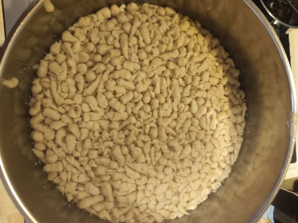 - Die Spätzle so lange kochen bis sie nach oben kommen und an der Oberfläche schwimmen. Die Spätzle am Besten mit einem Nudelsieb absieben.
