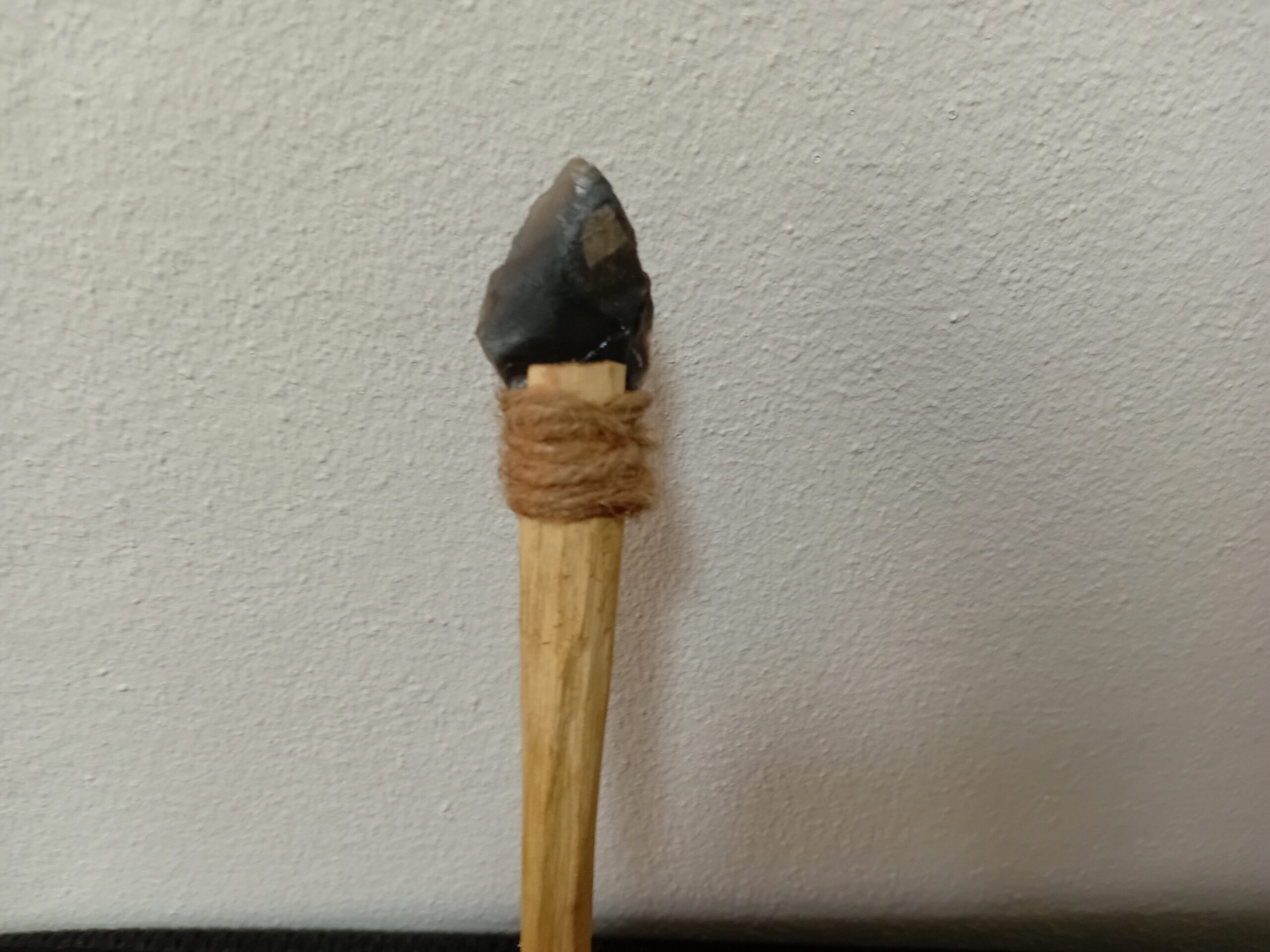 Sie wurde, nachdem sie angespitzt wurde, flambiert, damit die Spitze stabiler bliebe. Es wäre durchaus möglich, ein Tier damit zu erbeuten, vorausgesetzt, der Bogen habe die richtige Zugkraft.